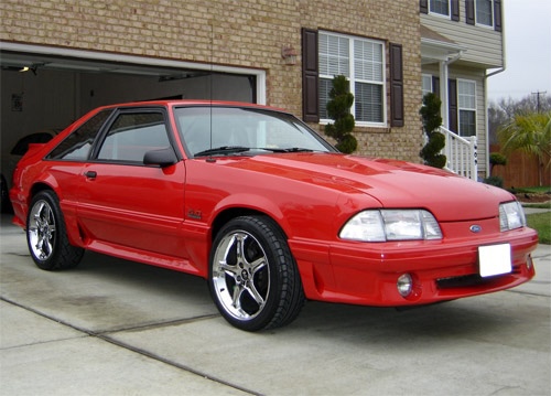 When I was a kid, my dad had a 5.0. It was a complete monster. He had gold Dayton rims with vogue tires, and they poked out wide. It was red just like the one in the picture, but it louvers in the back window.